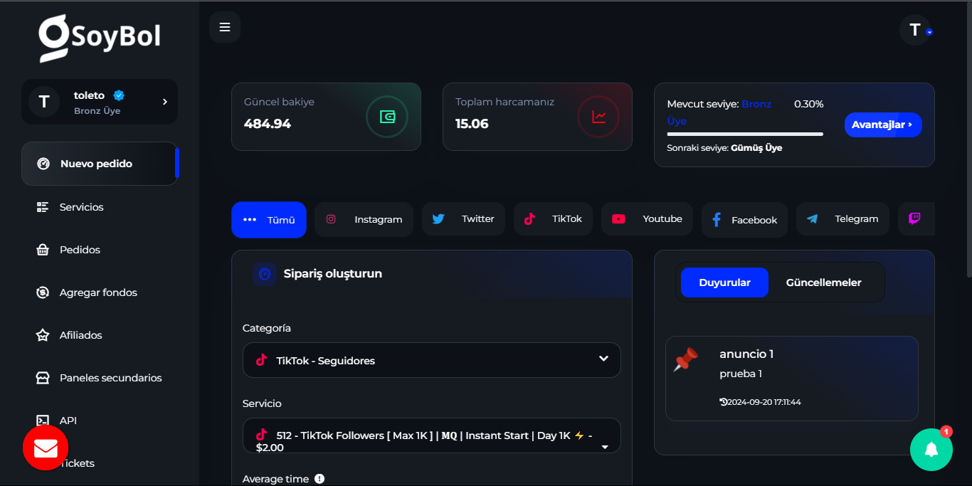 ▸ Excelente panel de usuario (Ofrece a tus clientes un panel fácil de usar donde podrán realizar miles de pedidos).