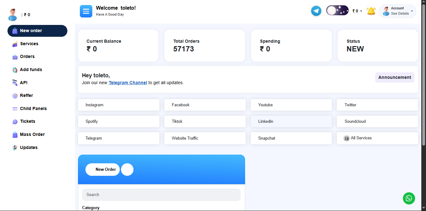 ▸ Y muchas otras funciones interesantes."Desbloquee todo el potencial de su marketing en redes sociales con el script de panel de WORLDOFSMM , la solución definitiva para gestionar y automatizar sus servicios de marketing en redes sociales. Este potente script está diseñado para ayudar a las empresas y a las personas a optimizar sus operaciones, ofreciendo una integración sencilla, herramientas de gestión fáciles de usar y una amplia gama de funciones diseñadas para un crecimiento eficaz en las redes sociales. Ya sea que esté revendiendo servicios de marketing en redes sociales o construyendo su propia plataforma, el script de panel de Dream SMM ofrece alto rendimiento, transacciones seguras y una escalabilidad perfecta. ¡Comience hoy mismo y mejore sus esfuerzos de marketing en redes sociales!"
