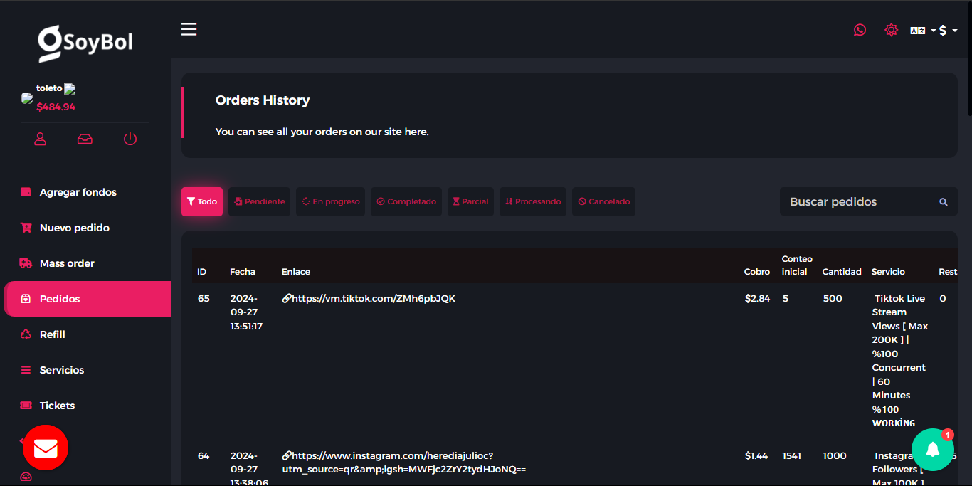 ▸ Excelente panel de usuario (Ofrece a tus clientes un panel fácil de usar donde podrán realizar miles de pedidos).
