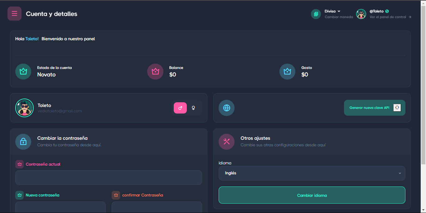 ▸ API de usuario (Permite que otros paneles utilicen su panel como proveedor).